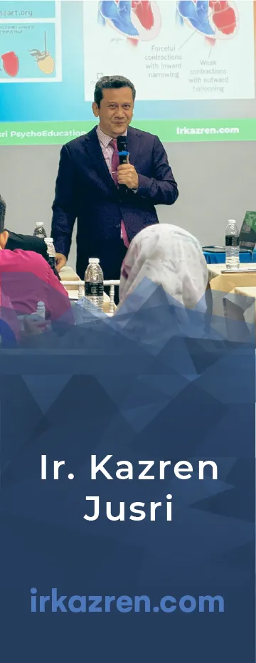 Ir. Kazren membantu organisasi dan individu memahami kepentingan keseimbangan minda, pengurusan tekanan, dan pembinaan daya tahan diri untuk kehidupan yang lebih positif dan produktif.